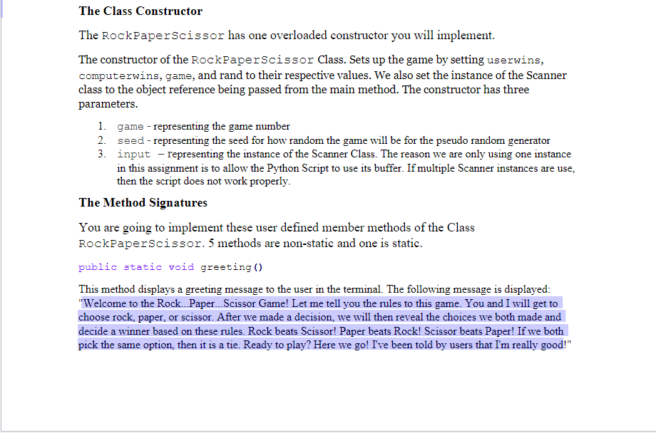 Solved The Class Constructor The Rockpaperscissor Has One Chegg Com